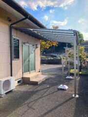 「物干し竿を置いている場所の軒が小さく、雨が降ると濡れてしまい不便なのでテラスを取り付けたい」とのご相談でした。