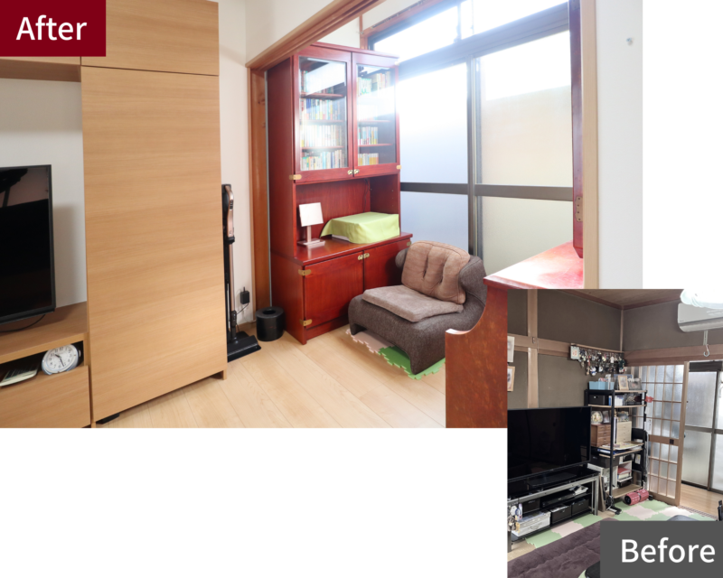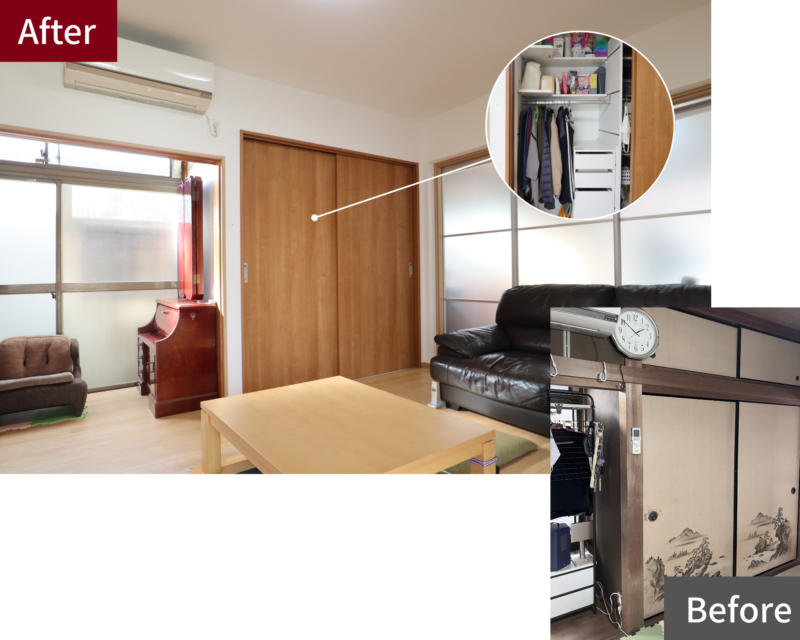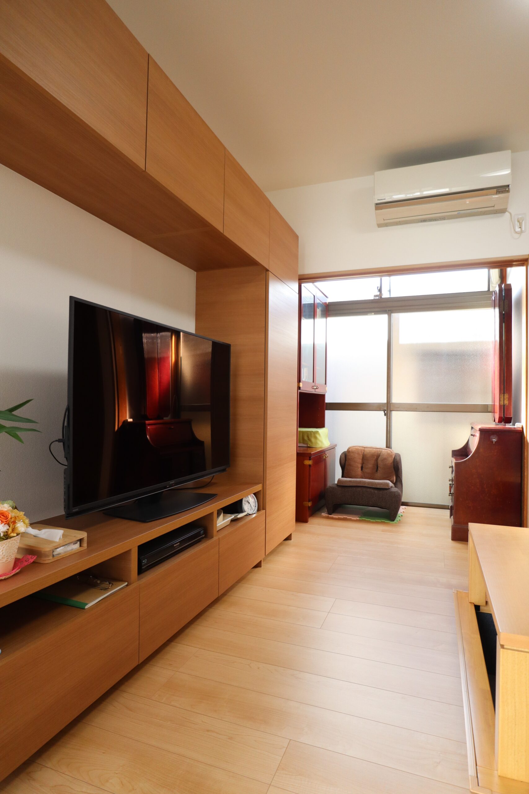 「物を整理してスッキリさせたい」というご要望に応え、テレビ周りに壁面収納を、押し入れにはLIXILのヴィータスパネルを設置し、今の生活スタイルにあった収納になりました 。