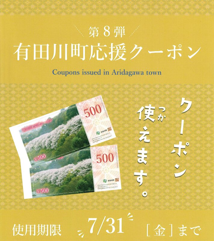 「有田川町応援クーポン(第8弾)」が発行されます。